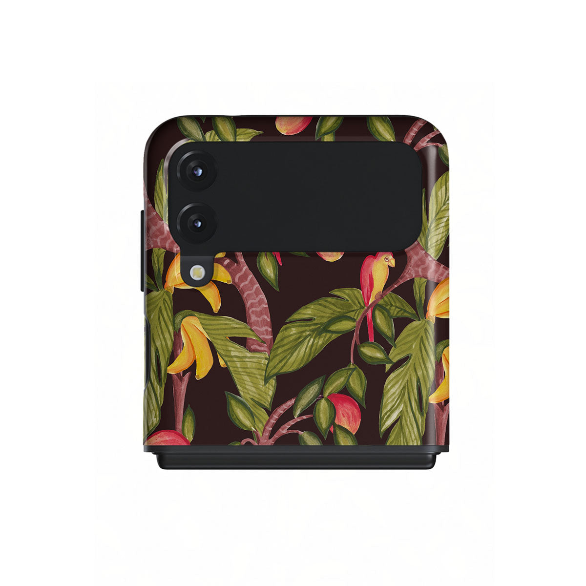 A lush botanical fantasy where ripe mangoes hang like forbidden fruit. Deep greens and juicy oranges pull you into a tropical escape. If this Samsung Galaxy Z Flip 3 phone case design had a voice, it would purr.