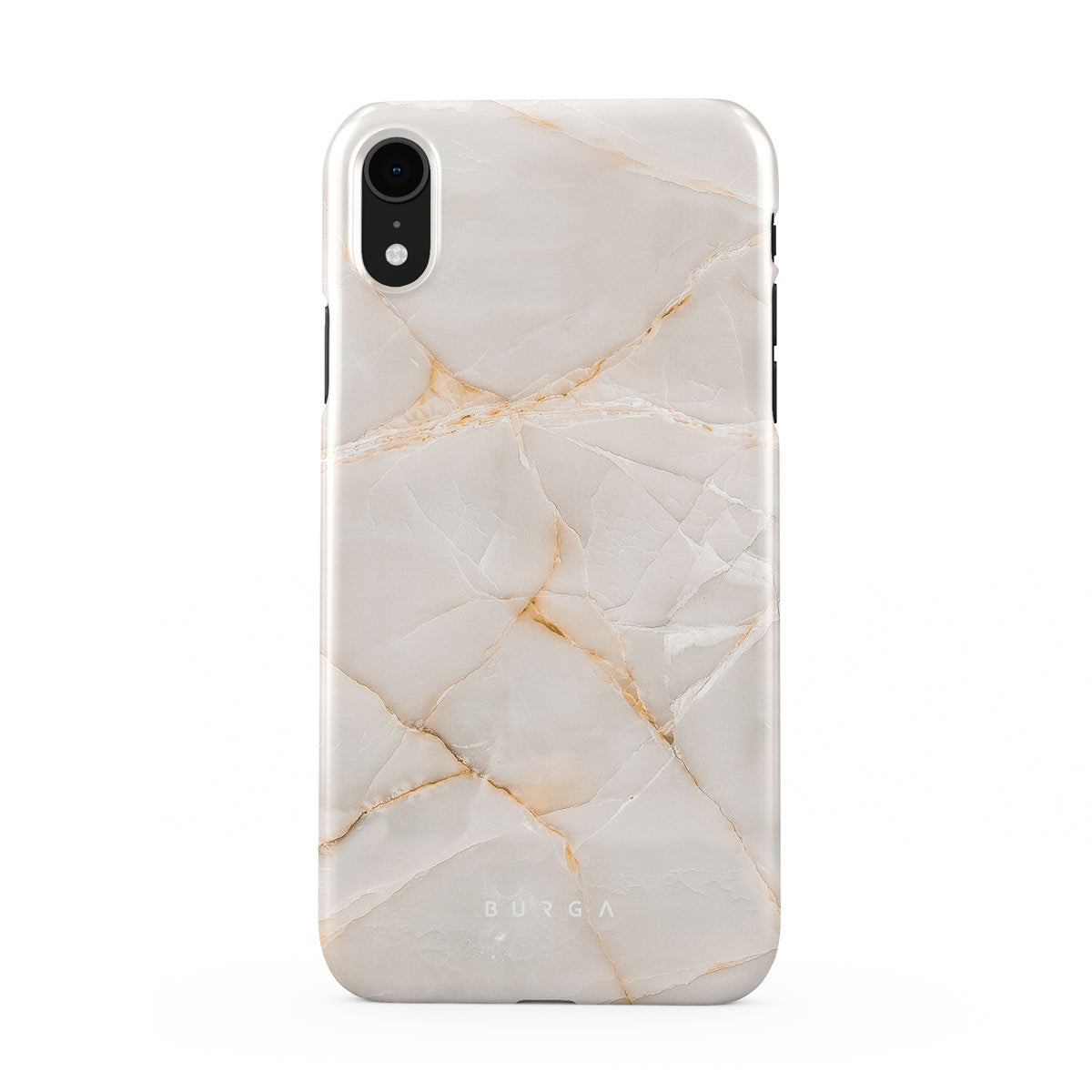 The Vanilla Sand Marble iPhone XR phone case cover features a marble design with creamy canvas showcasing beautiful golden hues. The soft-toned case will add a touch of luxury to the device while protecting it from dangerous falls.