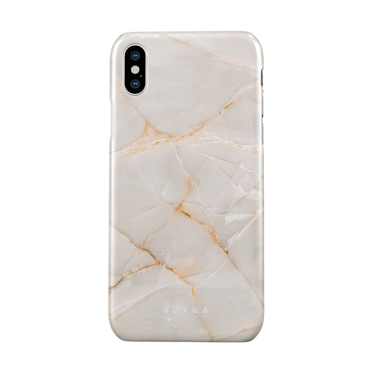 The Vanilla Sand Marble iPhone XS Max phone case cover features a marble design with creamy canvas showcasing beautiful golden hues. The soft-toned case will add a touch of luxury to the device while protecting it from dangerous falls.
