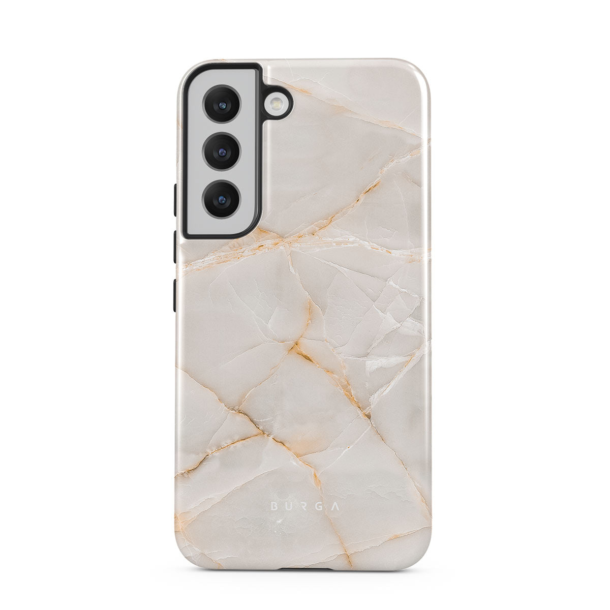 The Vanilla Sand Marble Samsung Galaxy S22 phone case cover features a marble design with creamy canvas showcasing beautiful golden hues. The soft-toned case will add a touch of luxury to the device while protecting it from dangerous falls.