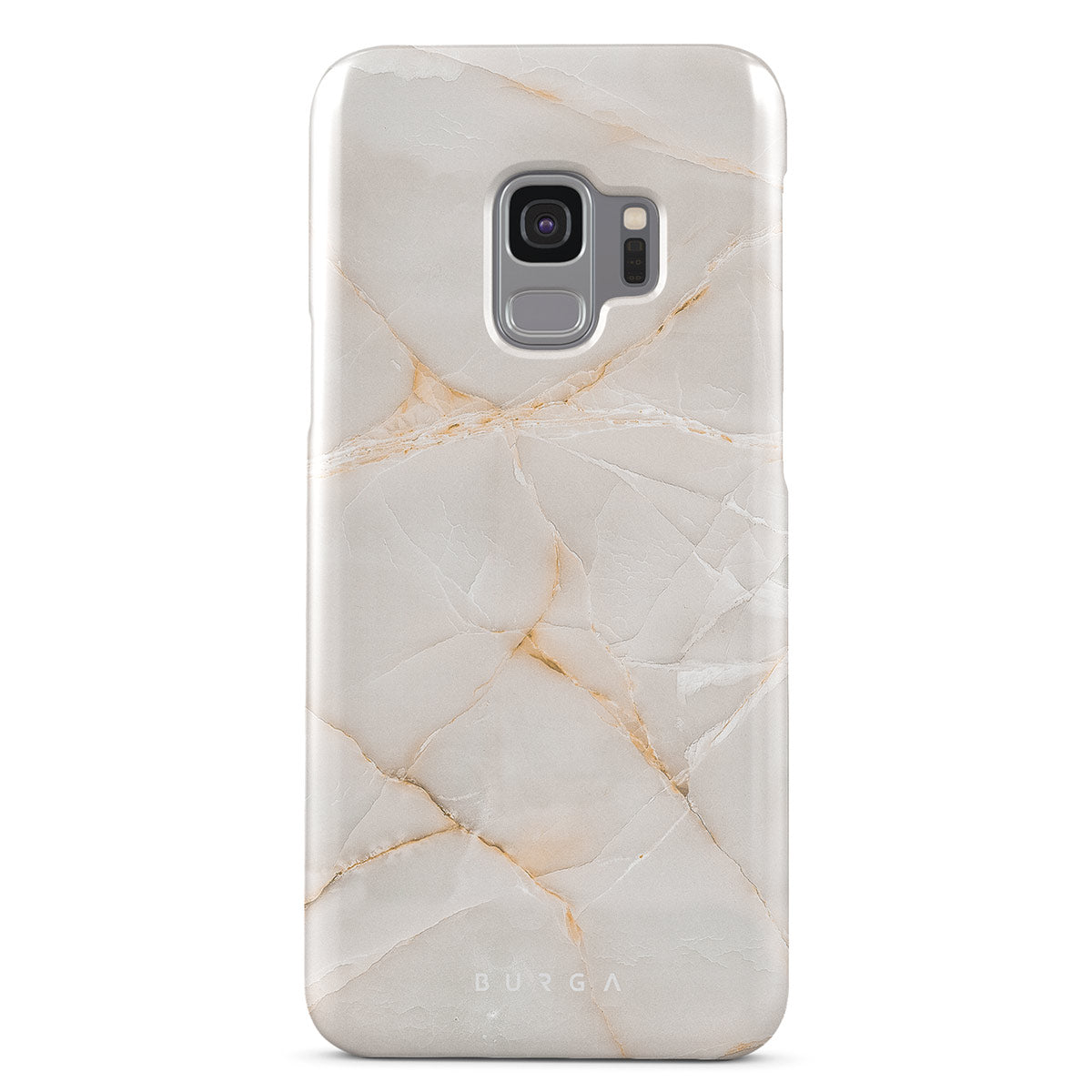 The Vanilla Sand Marble Samsung Galaxy S9 phone case cover features a marble design with creamy canvas showcasing beautiful golden hues. The soft-toned case will add a touch of luxury to the device while protecting it from dangerous falls.