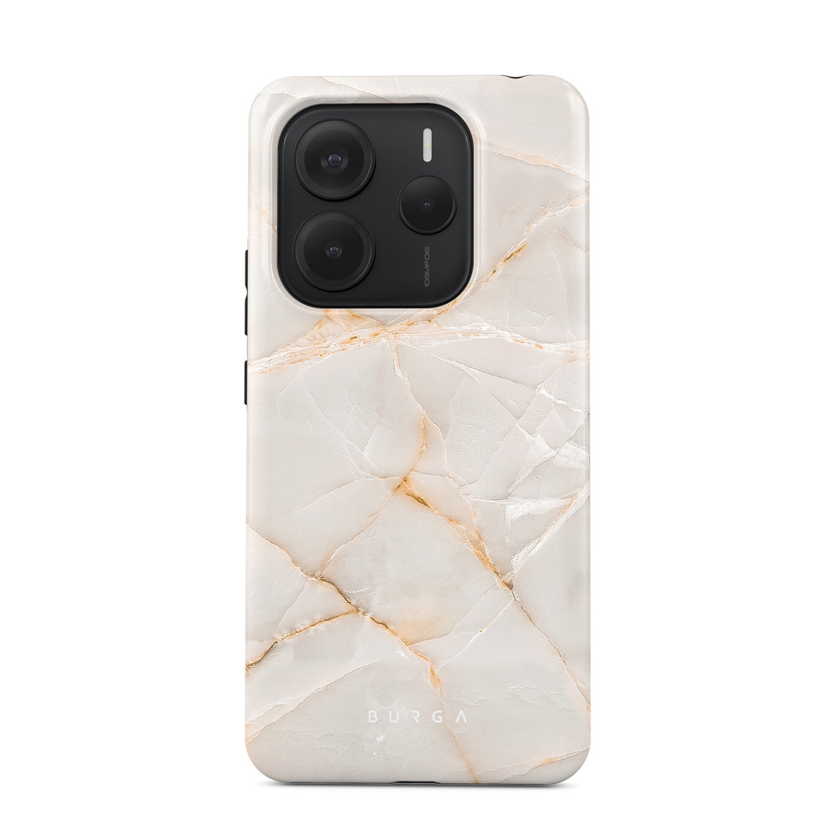 The Vanilla Sand Marble Xiaomi Redmi Note 14 5G phone case cover features a marble design with creamy canvas showcasing beautiful golden hues. The soft-toned case will add a touch of luxury to the device while protecting it from dangerous falls.