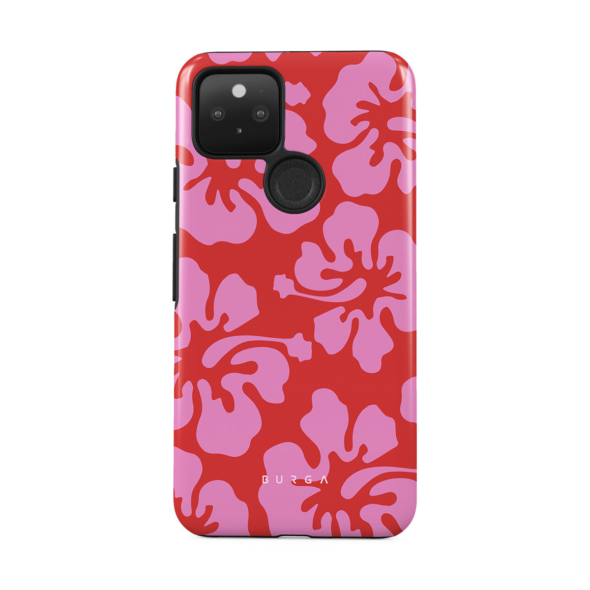 Dive into a sea of floral fantasy with Me Gustas Tu. Featuring oversized coral-toned blooms against a fiery backdrop, this Google Pixel 5 phone case design captures the wild heart of tropical flowers—perfect for those who want to carry a touch of exotic flair.