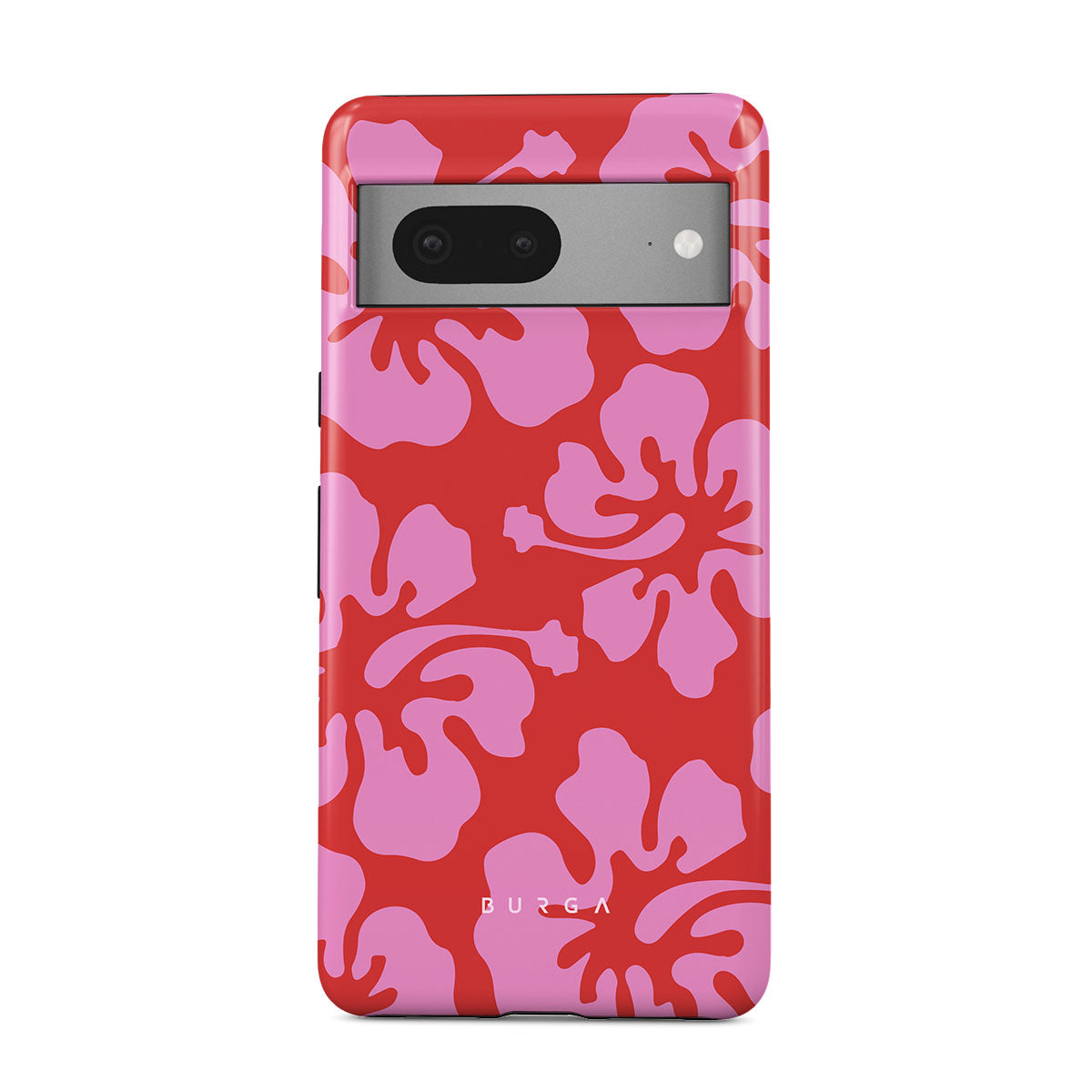 Dive into a sea of floral fantasy with Me Gustas Tu. Featuring oversized coral-toned blooms against a fiery backdrop, this Google Pixel 7 phone case design captures the wild heart of tropical flowers—perfect for those who want to carry a touch of exotic flair.