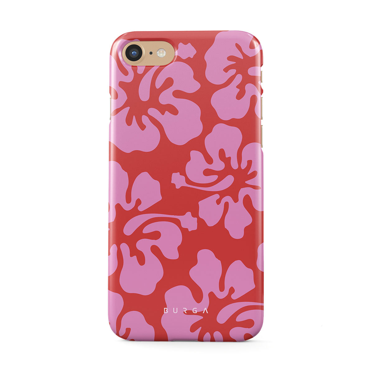 Dive into a sea of floral fantasy with Me Gustas Tu. Featuring oversized coral-toned blooms against a fiery backdrop, this iPhone 7 / iPhone 8 phone case design captures the wild heart of tropical flowers—perfect for those who want to carry a touch of exotic flair.