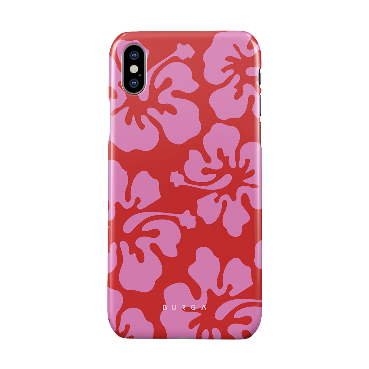 Dive into a sea of floral fantasy with Me Gustas Tu. Featuring oversized coral-toned blooms against a fiery backdrop, this iPhone XS Max phone case design captures the wild heart of tropical flowers—perfect for those who want to carry a touch of exotic flair.