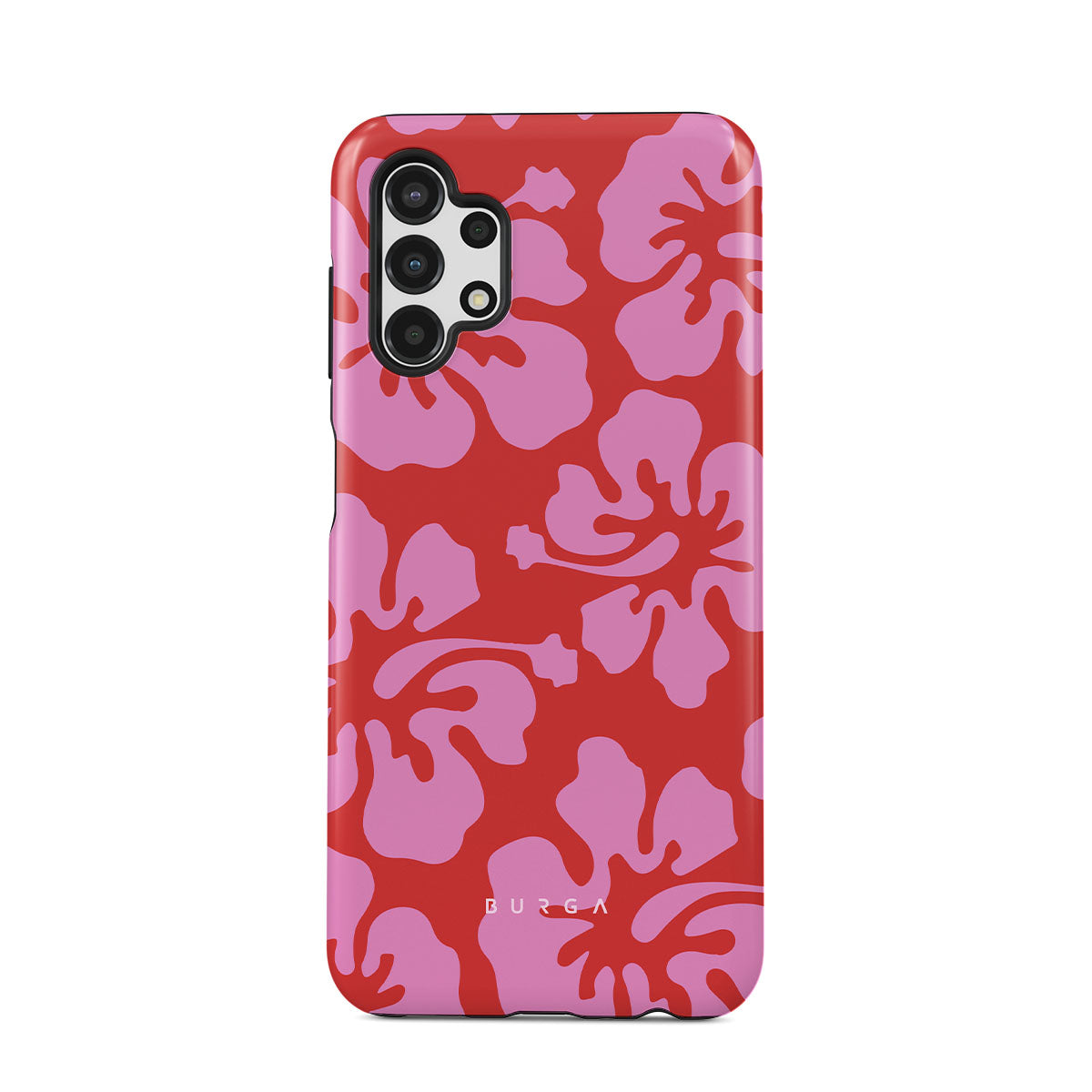 Dive into a sea of floral fantasy with Me Gustas Tu. Featuring oversized coral-toned blooms against a fiery backdrop, this Samsung Galaxy A13 4G phone case design captures the wild heart of tropical flowers—perfect for those who want to carry a touch of exotic flair.