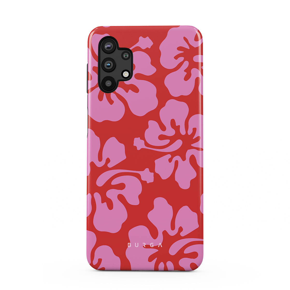 Dive into a sea of floral fantasy with Me Gustas Tu. Featuring oversized coral-toned blooms against a fiery backdrop, this Samsung Galaxy A32 5G phone case design captures the wild heart of tropical flowers—perfect for those who want to carry a touch of exotic flair.