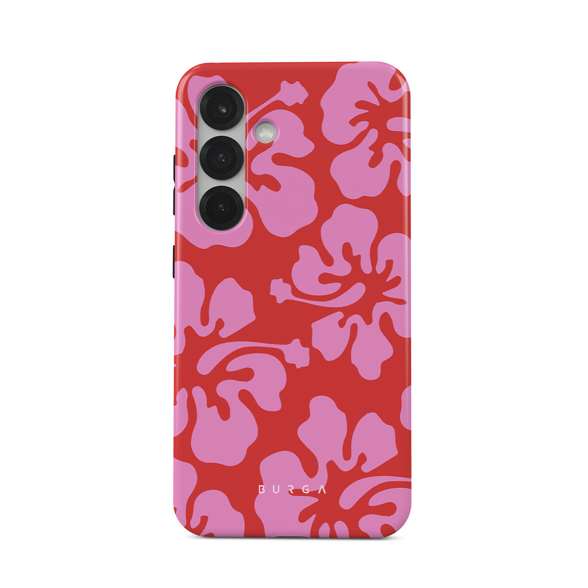 Dive into a sea of floral fantasy with Me Gustas Tu. Featuring oversized coral-toned blooms against a fiery backdrop, this Samsung Galaxy S25 Plus phone case design captures the wild heart of tropical flowers—perfect for those who want to carry a touch of exotic flair.