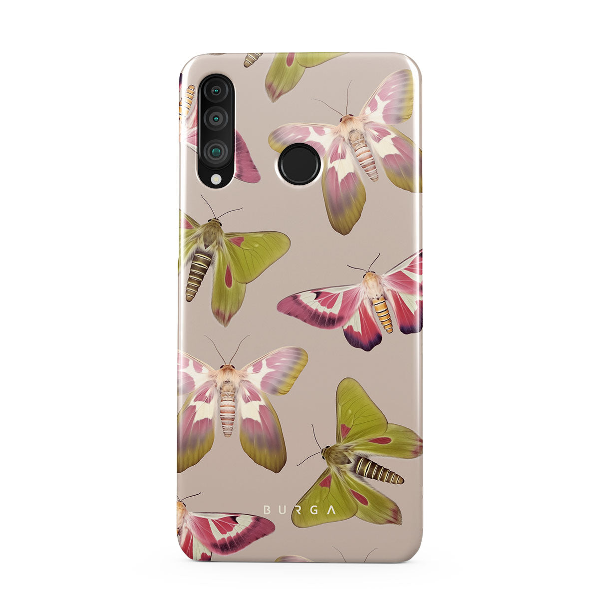 A tapestry of muted-toned moths — their wing patterns echoing tales of transformation and resilience found in nature's delicate beings. These moths, wings wide, serve as silent mentors, teaching us that every phase of life and change holds its own magic and mystery. Discover our Metamorphosis Huawei P30 Lite phone casedesign.