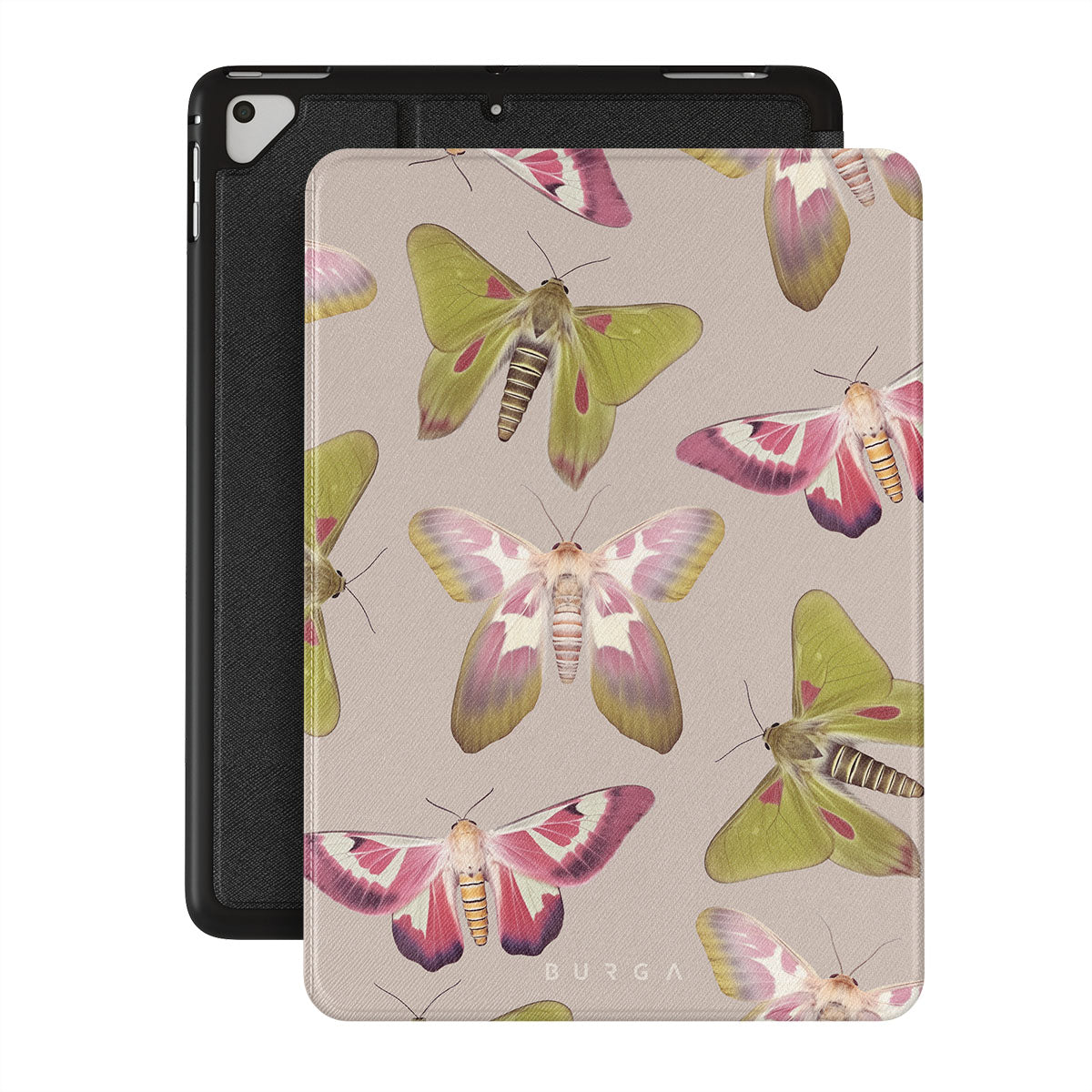 A tapestry of muted-toned moths — their wing patterns echoing tales of transformation and resilience found in nature's delicate beings. These moths, wings wide, serve as silent mentors, teaching us that every phase of life and change holds its own magic and mystery. Discover our Metamorphosis iPad 9.7 (6th/5th Gen) folio casedesign.