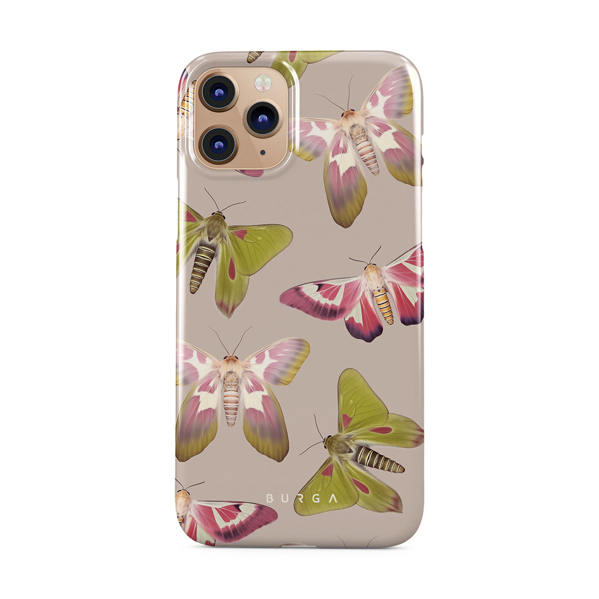 A tapestry of muted-toned moths — their wing patterns echoing tales of transformation and resilience found in nature's delicate beings. These moths, wings wide, serve as silent mentors, teaching us that every phase of life and change holds its own magic and mystery. Discover our Metamorphosis iPhone 11 Pro Max phone casedesign.