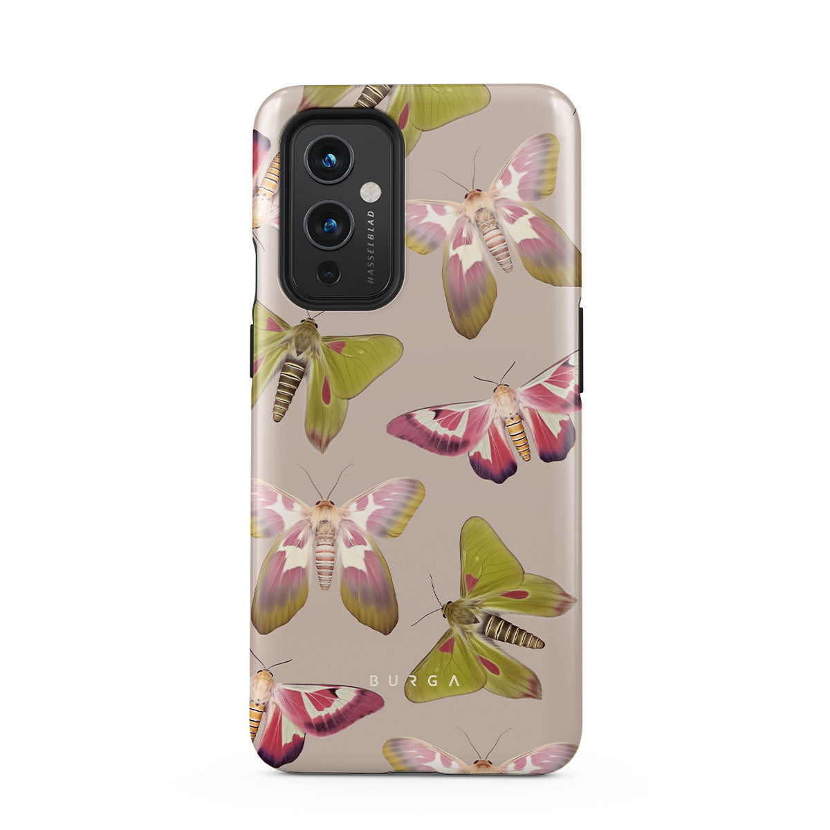A tapestry of muted-toned moths — their wing patterns echoing tales of transformation and resilience found in nature's delicate beings. These moths, wings wide, serve as silent mentors, teaching us that every phase of life and change holds its own magic and mystery. Discover our Metamorphosis OnePlus 9 phone casedesign.