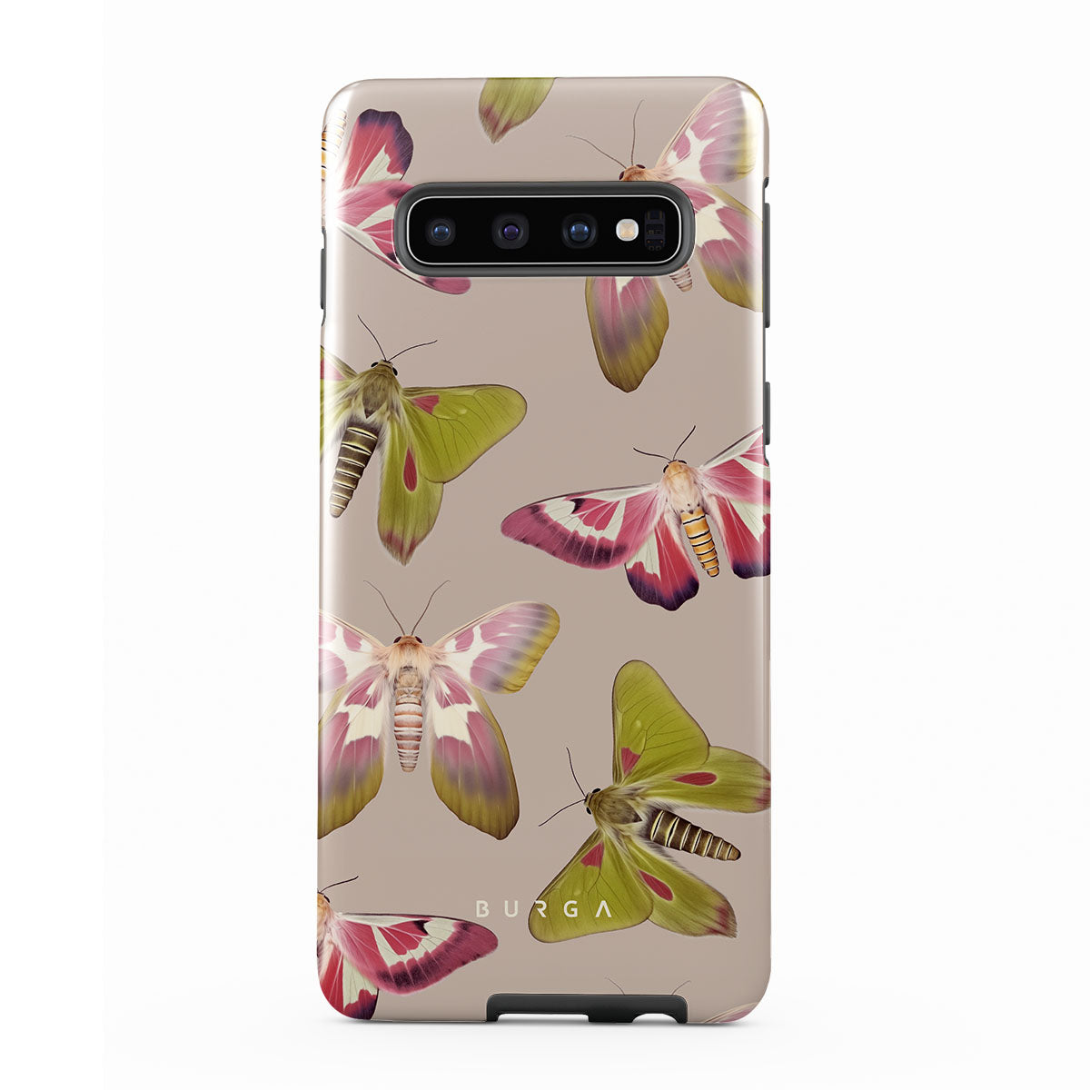 A tapestry of muted-toned moths — their wing patterns echoing tales of transformation and resilience found in nature's delicate beings. These moths, wings wide, serve as silent mentors, teaching us that every phase of life and change holds its own magic and mystery. Discover our Metamorphosis Samsung Galaxy S10 4G phone casedesign.