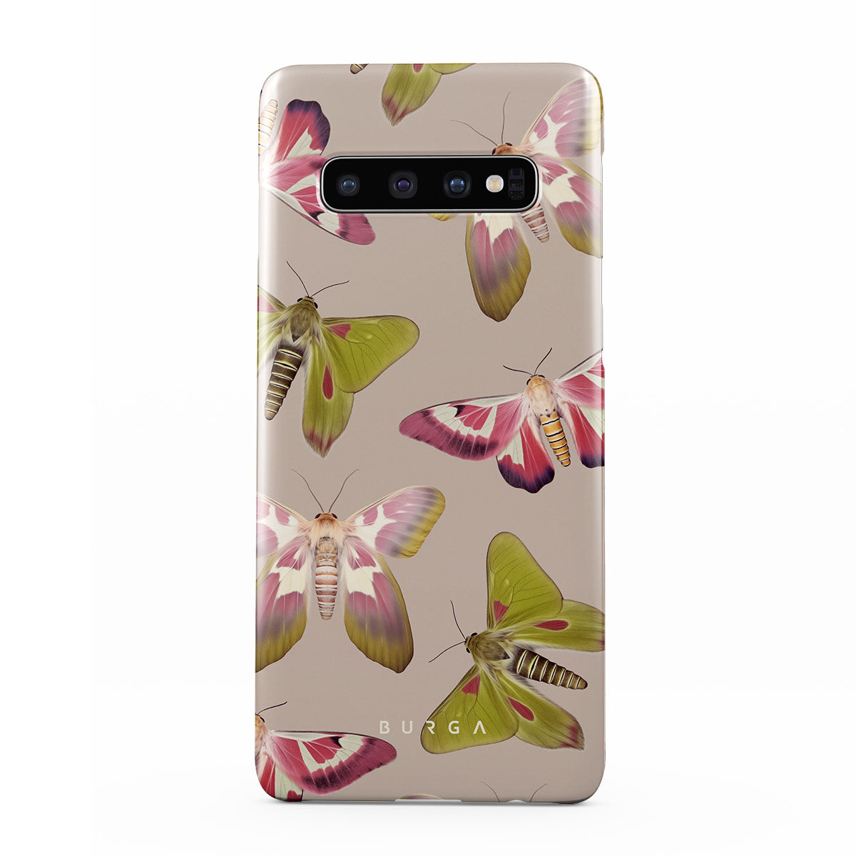 A tapestry of muted-toned moths — their wing patterns echoing tales of transformation and resilience found in nature's delicate beings. These moths, wings wide, serve as silent mentors, teaching us that every phase of life and change holds its own magic and mystery. Discover our Metamorphosis Samsung Galaxy S10 Plus phone casedesign.