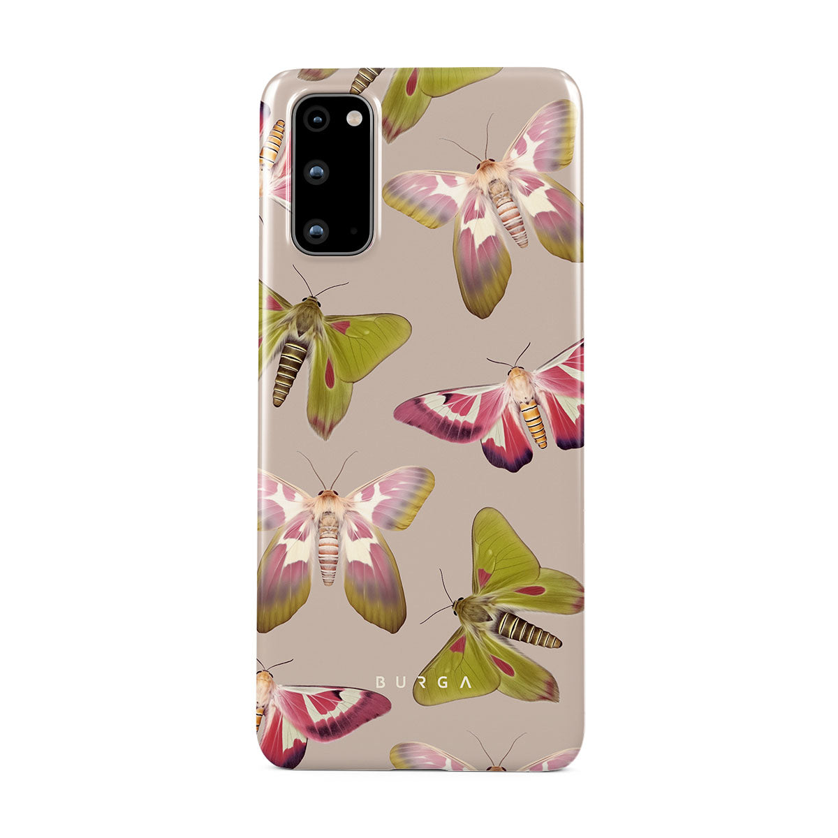 A tapestry of muted-toned moths — their wing patterns echoing tales of transformation and resilience found in nature's delicate beings. These moths, wings wide, serve as silent mentors, teaching us that every phase of life and change holds its own magic and mystery. Discover our Metamorphosis Samsung Galaxy S20 4G / 5G phone casedesign.