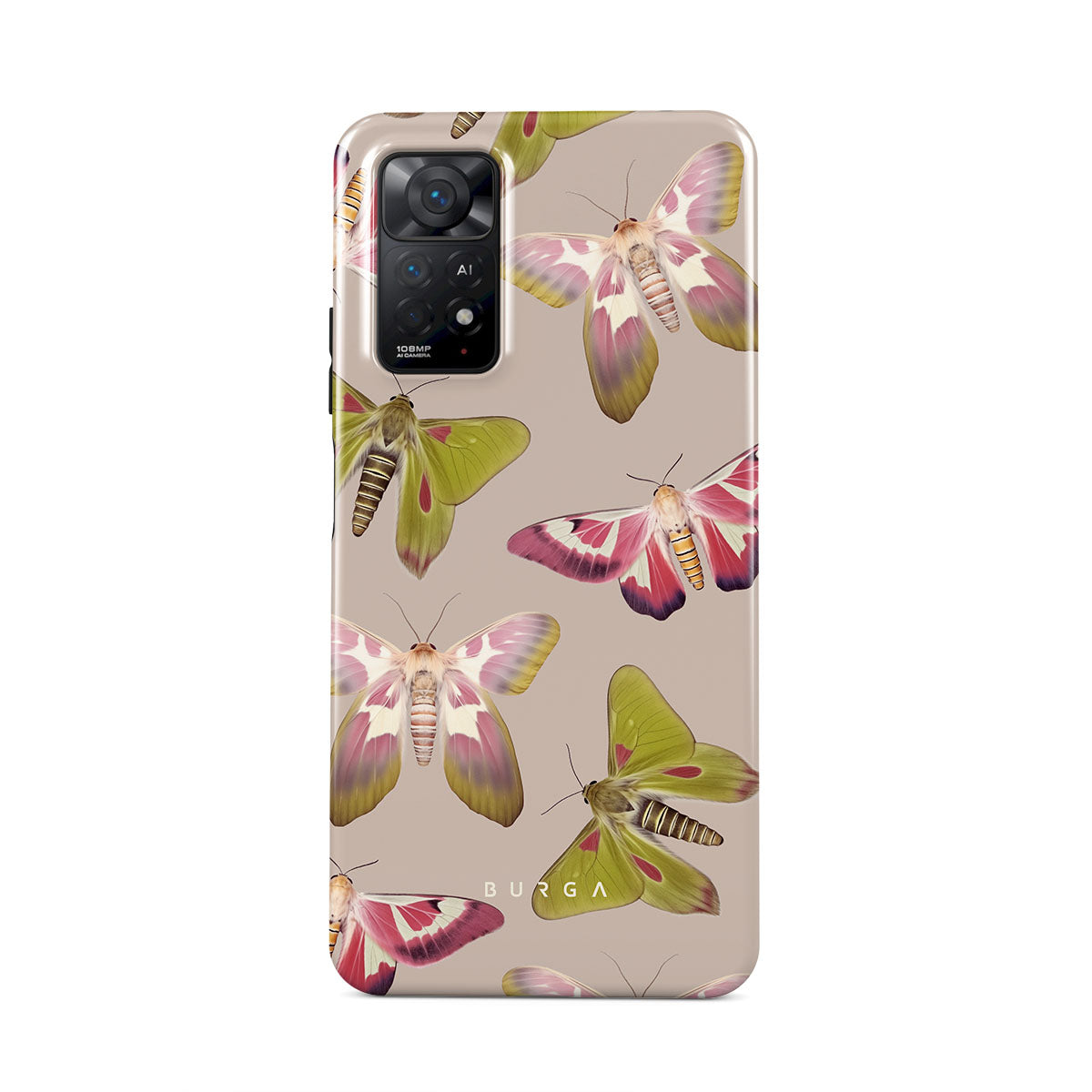 A tapestry of muted-toned moths — their wing patterns echoing tales of transformation and resilience found in nature's delicate beings. These moths, wings wide, serve as silent mentors, teaching us that every phase of life and change holds its own magic and mystery. Discover our Metamorphosis Xiaomi Redmi Note 11 Pro phone casedesign.