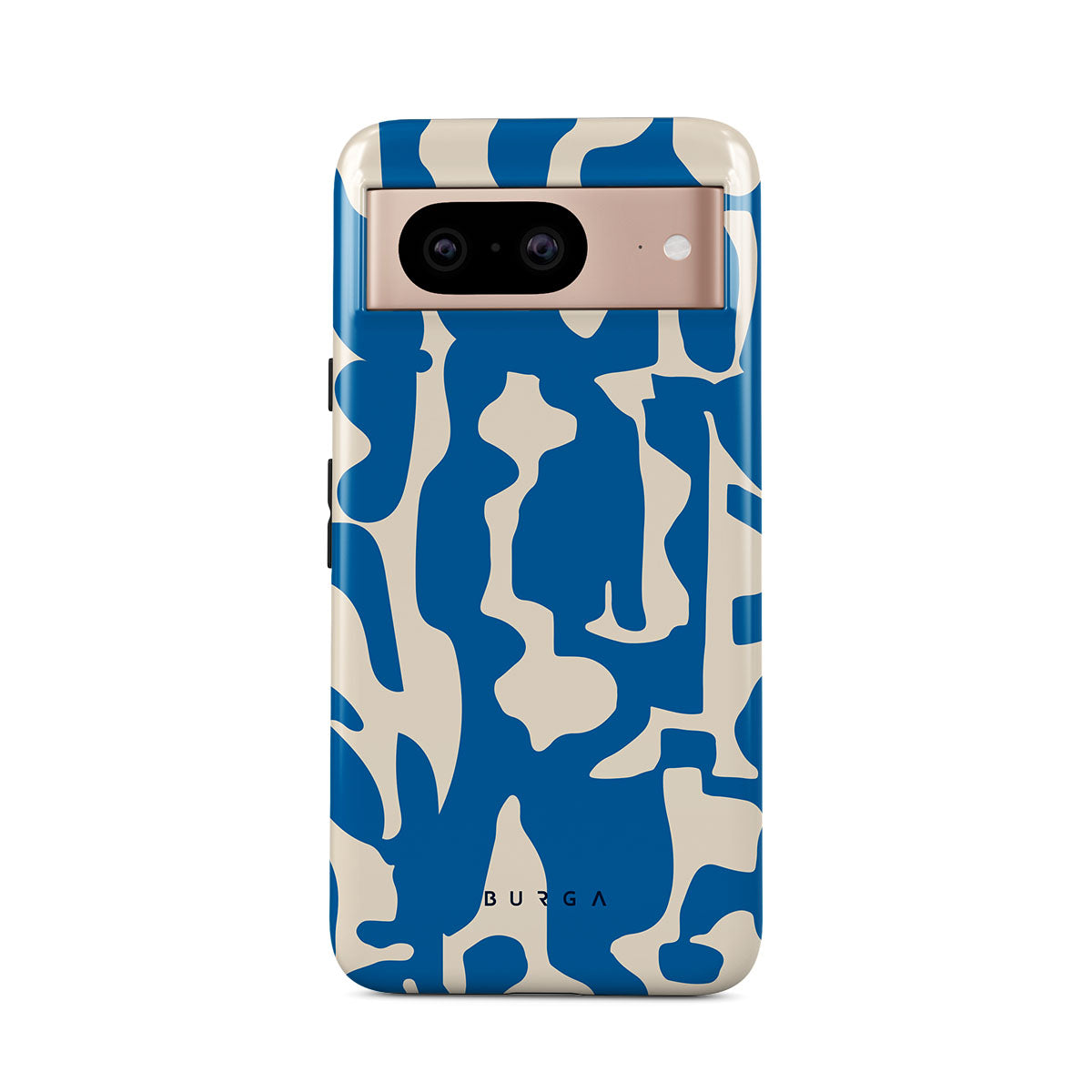 Indulge in the exquisite elegance of Mirage. Against a canvas of deep, enigmatic blue, luminous shapes gracefully disrupt the darkness, creating a captivating visual spectacle. Let this Google Pixel 8 phone case be a symbol of your impeccable taste and magnetic charm.