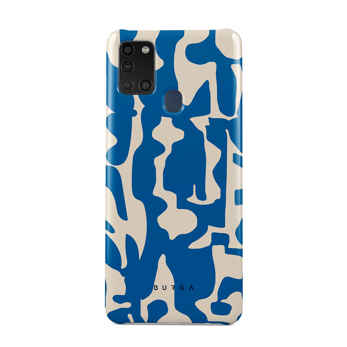 Indulge in the exquisite elegance of Mirage. Against a canvas of deep, enigmatic blue, luminous shapes gracefully disrupt the darkness, creating a captivating visual spectacle. Let this Samsung Galaxy A21s 4G phone case be a symbol of your impeccable taste and magnetic charm.