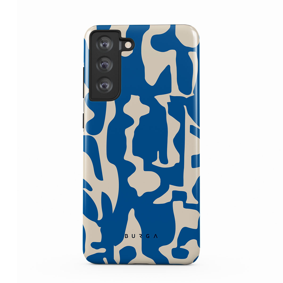 Indulge in the exquisite elegance of Mirage. Against a canvas of deep, enigmatic blue, luminous shapes gracefully disrupt the darkness, creating a captivating visual spectacle. Let this Samsung Galaxy S21 FE phone case be a symbol of your impeccable taste and magnetic charm.
