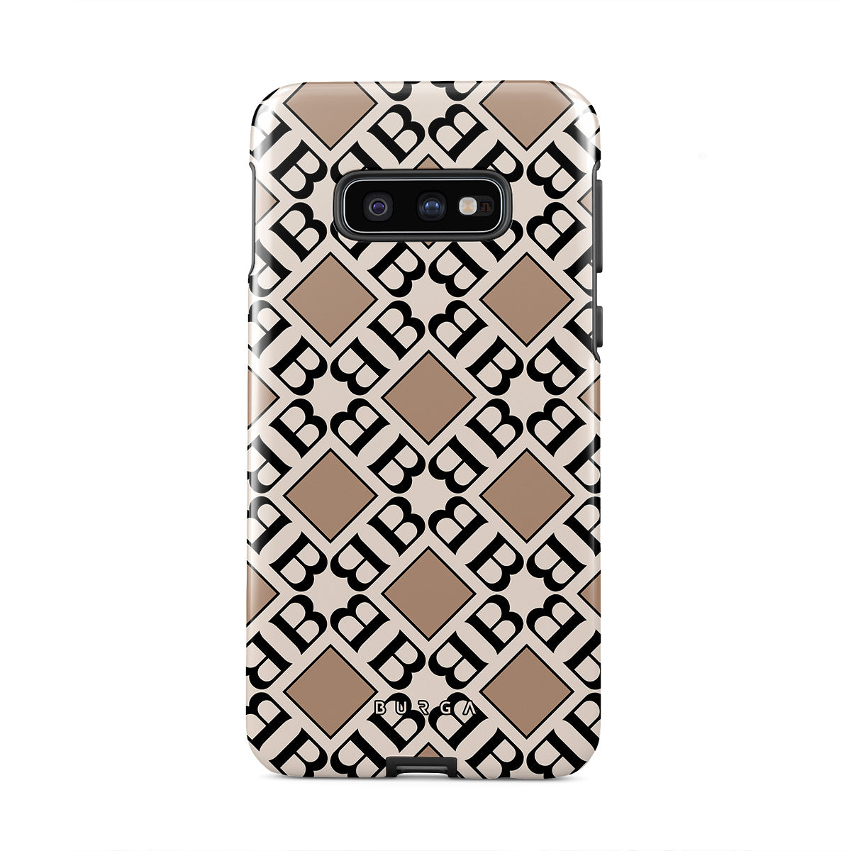 Our Monogram design adds a touch of quiet luxury to your Samsung Galaxy S10E phone case. With its subtle hues and delicate details, it bridges the gap between tradition and contemporary style, resulting in a timeless, effortlessly chic look.