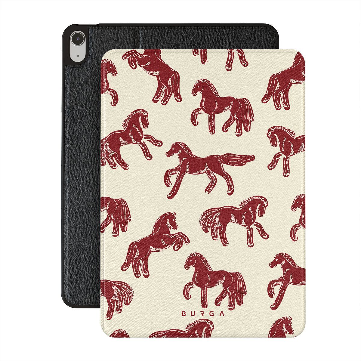 It's time to unleash your wild side with the Mustang design. Bold red horses gallop across a nude background, capturing the spirit of untamed adventure. This iPad Air 11 (7th/6th Gen) folio case is perfect for the free-spirited souls ready to ride into the unknown.