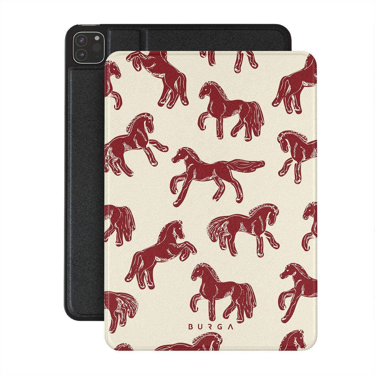 It's time to unleash your wild side with the Mustang design. Bold red horses gallop across a nude background, capturing the spirit of untamed adventure. This iPad Pro 12.9 (4th/3rd Gen) folio case is perfect for the free-spirited souls ready to ride into the unknown.