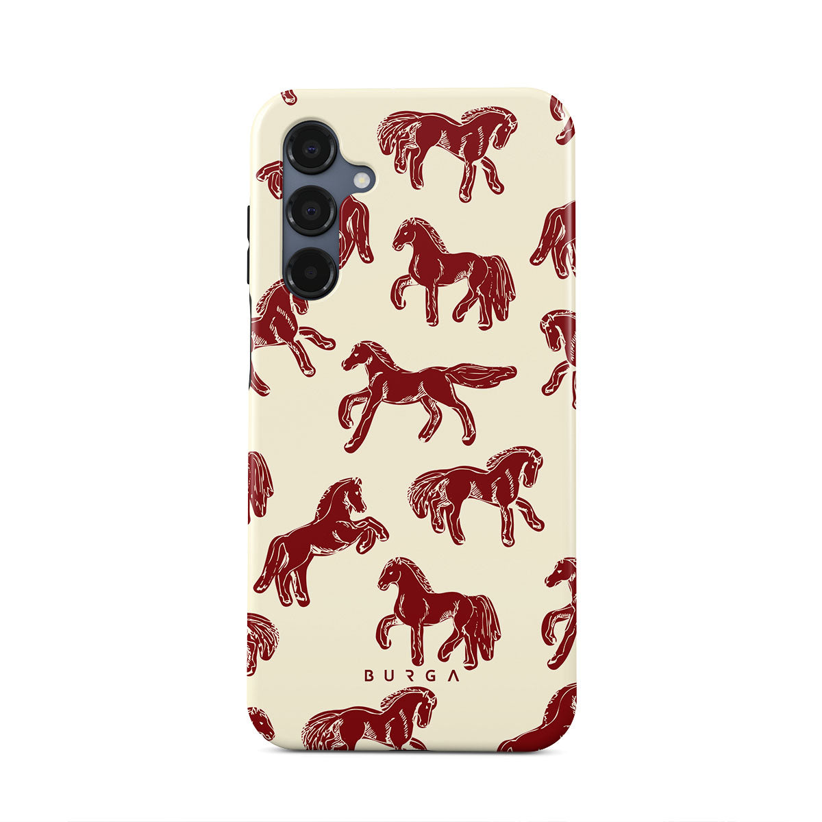 It's time to unleash your wild side with the Mustang design. Bold red horses gallop across a nude background, capturing the spirit of untamed adventure. This Samsung Galaxy A16 phone case is perfect for the free-spirited souls ready to ride into the unknown.