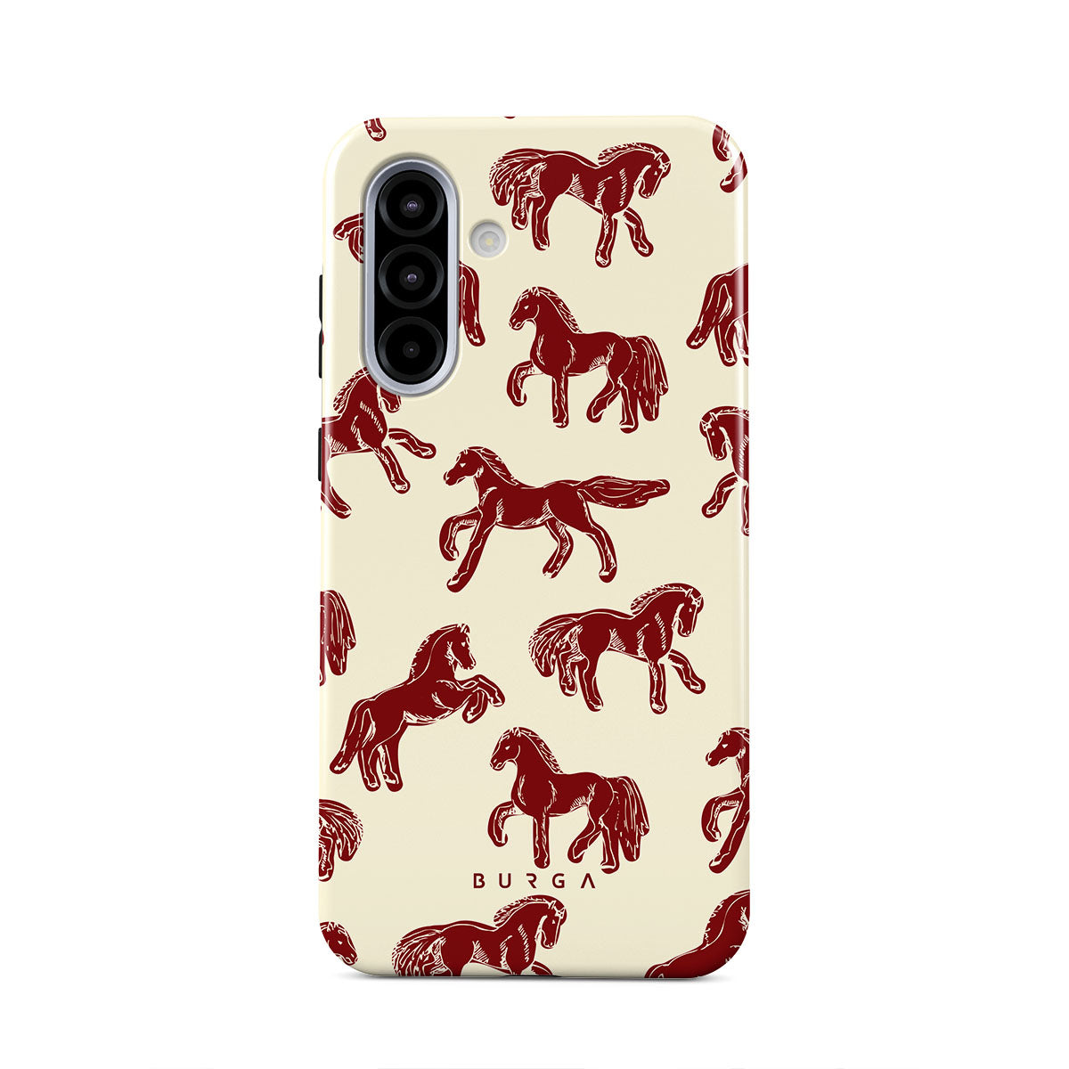 It's time to unleash your wild side with the Mustang design. Bold red horses gallop across a nude background, capturing the spirit of untamed adventure. This Samsung Galaxy A36 5G phone case is perfect for the free-spirited souls ready to ride into the unknown.