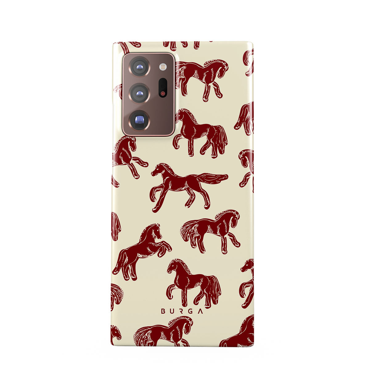 It's time to unleash your wild side with the Mustang design. Bold red horses gallop across a nude background, capturing the spirit of untamed adventure. This Samsung Galaxy Note 20 Ultra 4G / 5G phone case is perfect for the free-spirited souls ready to ride into the unknown.