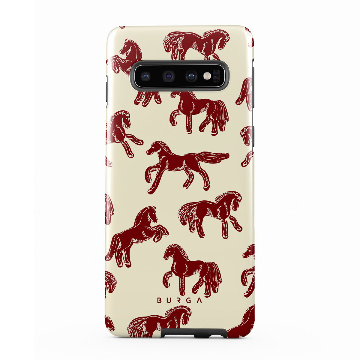 It's time to unleash your wild side with the Mustang design. Bold red horses gallop across a nude background, capturing the spirit of untamed adventure. This Samsung Galaxy S10 4G phone case is perfect for the free-spirited souls ready to ride into the unknown.