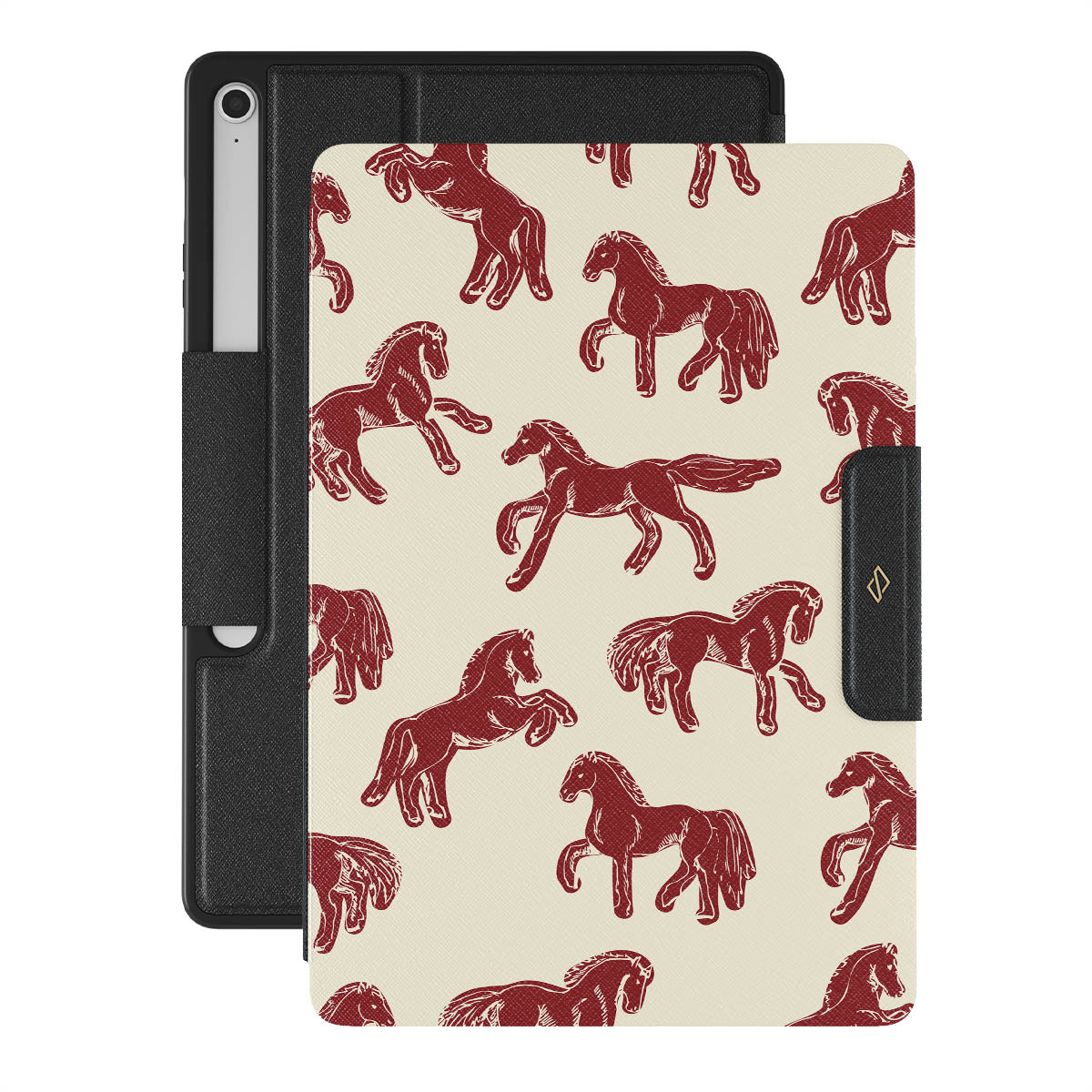 It's time to unleash your wild side with the Mustang design. Bold red horses gallop across a nude background, capturing the spirit of untamed adventure. This Samsung Galaxy Tab S10+ FE folio case is perfect for the free-spirited souls ready to ride into the unknown.