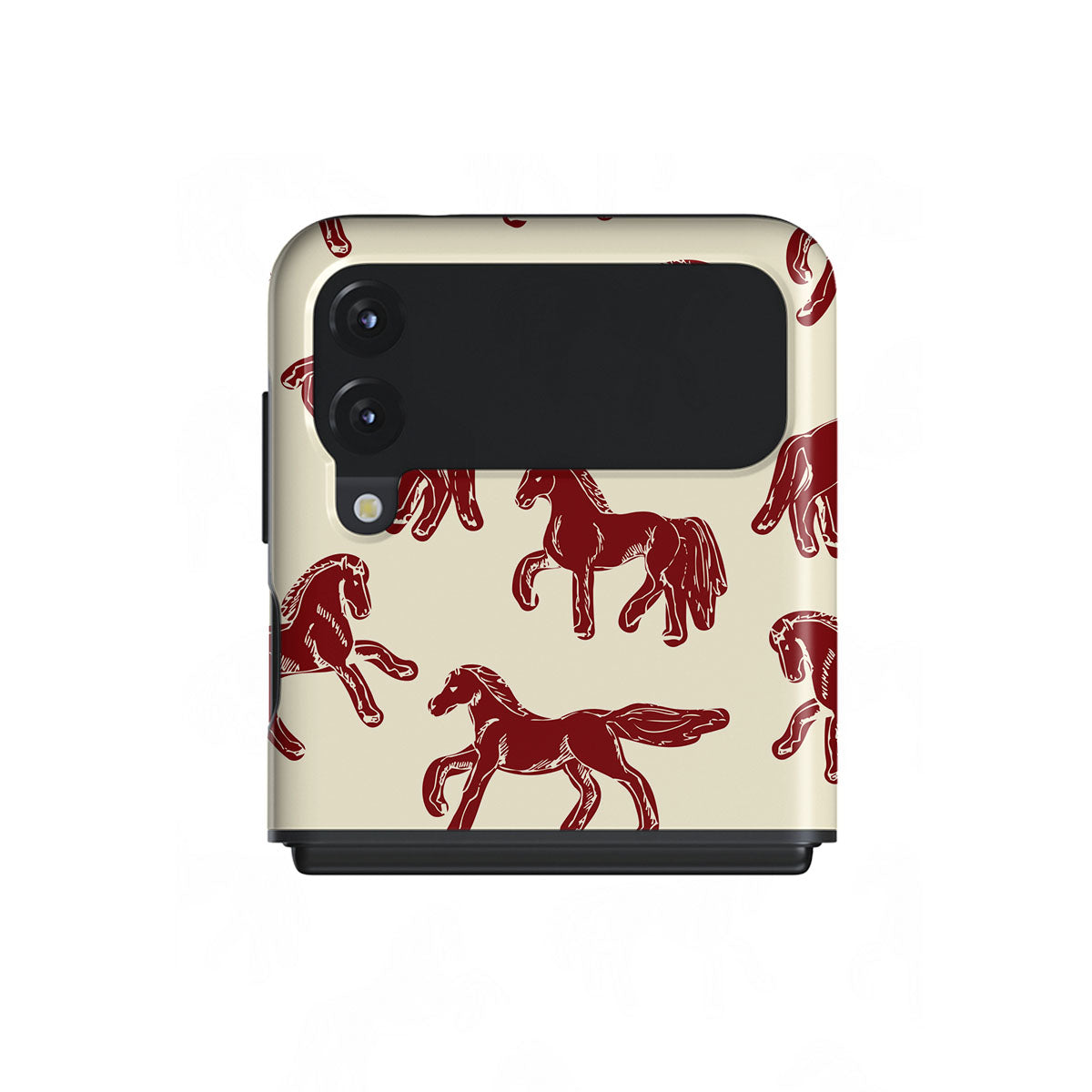 It's time to unleash your wild side with the Mustang design. Bold red horses gallop across a nude background, capturing the spirit of untamed adventure. This Samsung Galaxy Z Flip 3 phone case is perfect for the free-spirited souls ready to ride into the unknown.