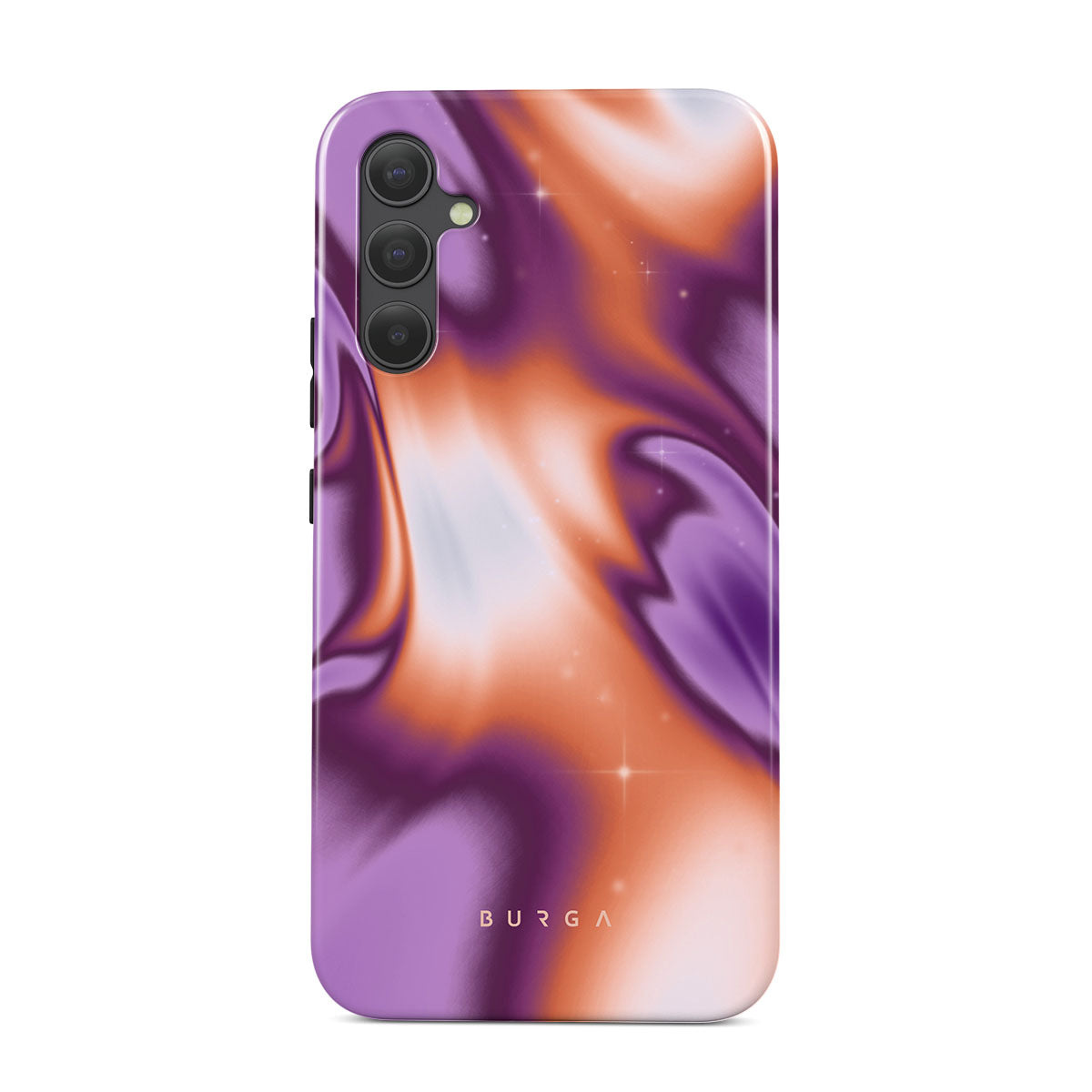 Dip into the Nebula, where runway glamour collides with cosmic seduction. Purple flames play upon a bright canvas, showcasing the fiery dance of distant galaxies. Our Nebula Samsung Galaxy A34 phone case is a piece of the universe, sparking conversations with its vibrant, otherworldly beauty.