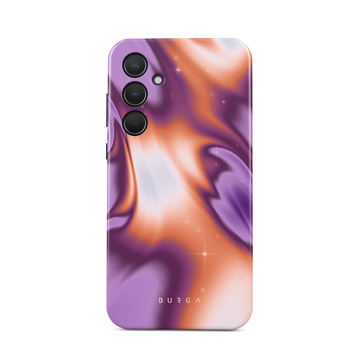 Dip into the Nebula, where runway glamour collides with cosmic seduction. Purple flames play upon a bright canvas, showcasing the fiery dance of distant galaxies. Our Nebula Samsung Galaxy A35 phone case is a piece of the universe, sparking conversations with its vibrant, otherworldly beauty.
