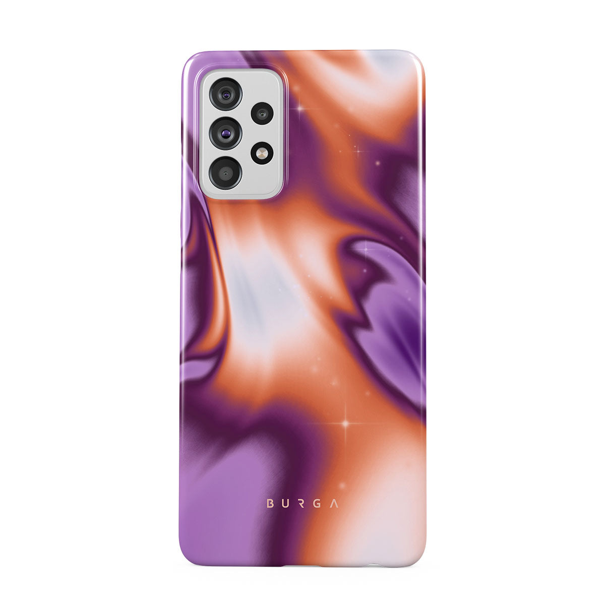 Dip into the Nebula, where runway glamour collides with cosmic seduction. Purple flames play upon a bright canvas, showcasing the fiery dance of distant galaxies. Our Nebula Samsung Galaxy A72 4G / 5G phone case is a piece of the universe, sparking conversations with its vibrant, otherworldly beauty.
