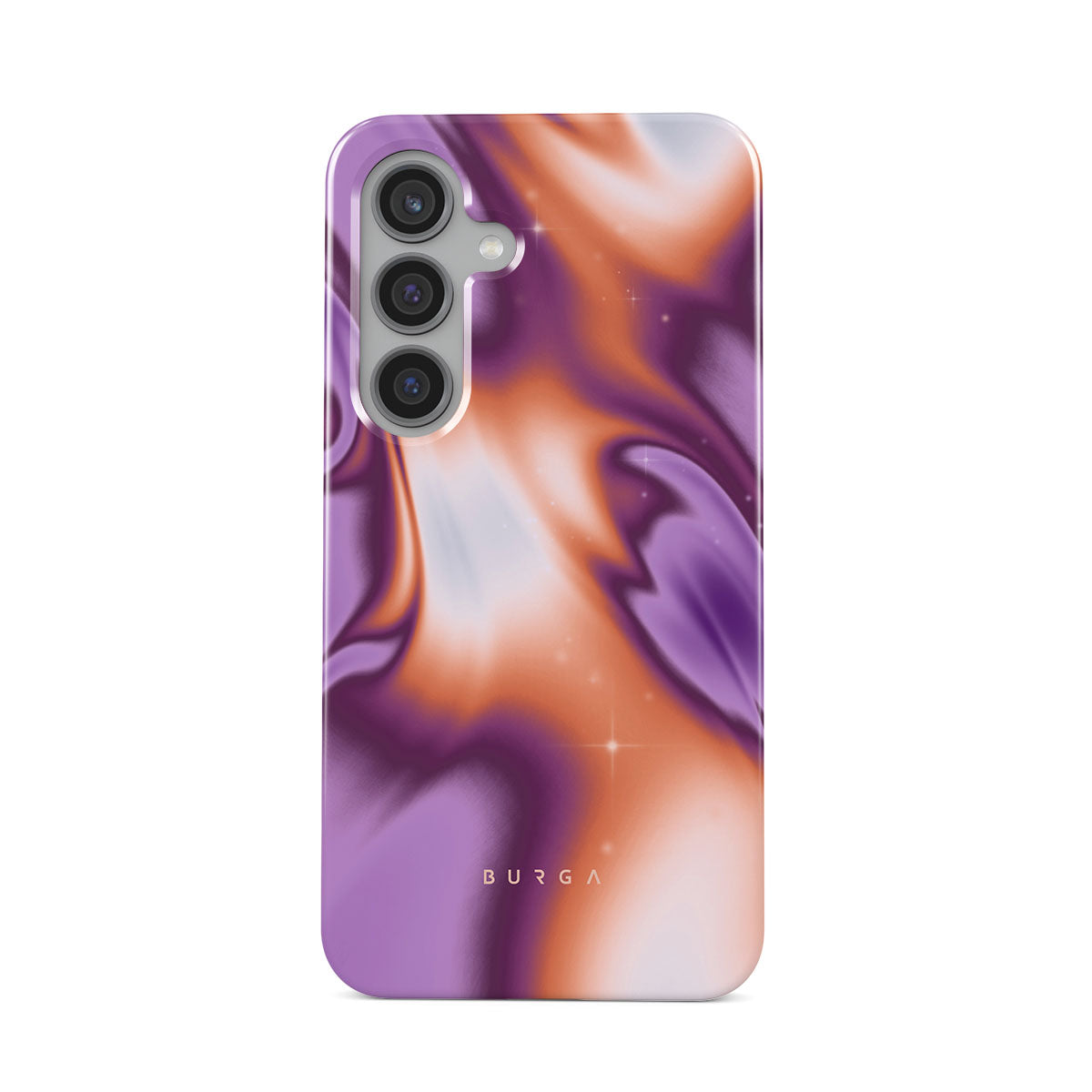 Dip into the Nebula, where runway glamour collides with cosmic seduction. Purple flames play upon a bright canvas, showcasing the fiery dance of distant galaxies. Our Nebula Samsung Galaxy S24 Plus phone case is a piece of the universe, sparking conversations with its vibrant, otherworldly beauty.