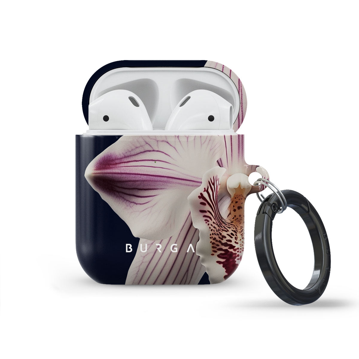 The white orchid blooms boldly upon a night sky blue, a beacon of clarity in the darkness. Our Nectar Apple Airpod Generation 1 & 2 case cover design speaks to the soul's desire to find light within, to illuminate the hidden paths of self-discovery that only reveal themselves under the cloak of introspection.
