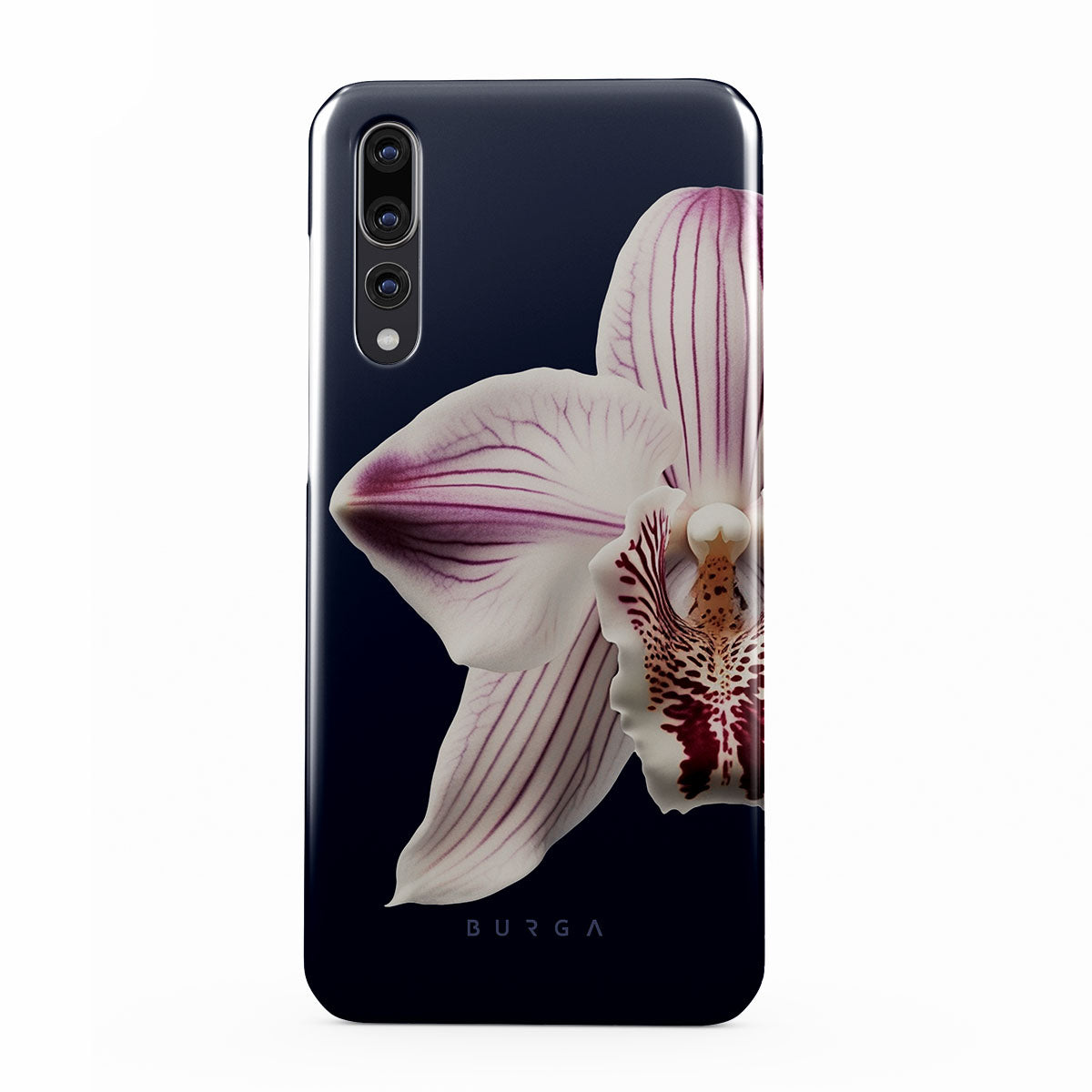 The white orchid blooms boldly upon a night sky blue, a beacon of clarity in the darkness. Our Nectar Huawei P20 phone case design speaks to the soul's desire to find light within, to illuminate the hidden paths of self-discovery that only reveal themselves under the cloak of introspection.