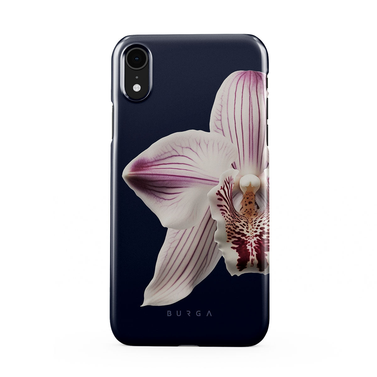 The white orchid blooms boldly upon a night sky blue, a beacon of clarity in the darkness. Our Nectar iPhone XR phone case design speaks to the soul's desire to find light within, to illuminate the hidden paths of self-discovery that only reveal themselves under the cloak of introspection.