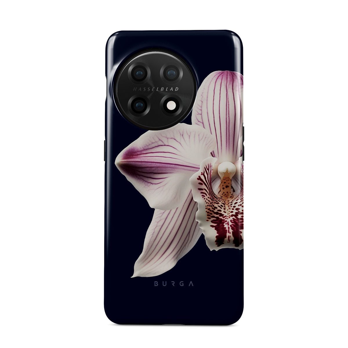 The white orchid blooms boldly upon a night sky blue, a beacon of clarity in the darkness. Our Nectar OnePlus 11 phone case design speaks to the soul's desire to find light within, to illuminate the hidden paths of self-discovery that only reveal themselves under the cloak of introspection.