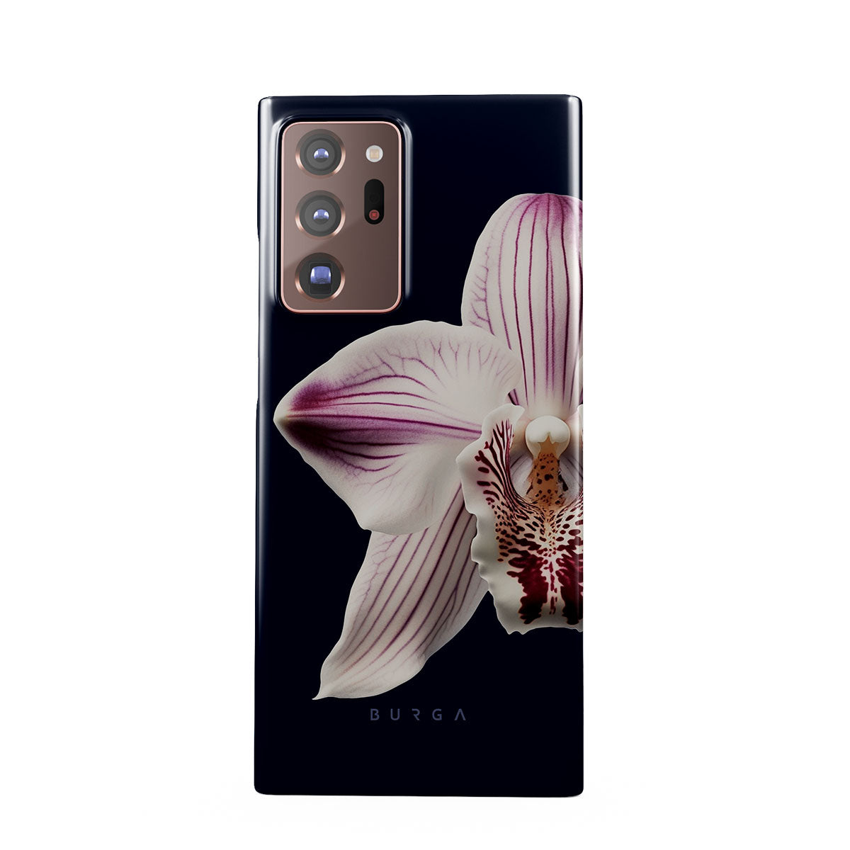 The white orchid blooms boldly upon a night sky blue, a beacon of clarity in the darkness. Our Nectar Samsung Galaxy Note 20 Ultra 4G / 5G phone case design speaks to the soul's desire to find light within, to illuminate the hidden paths of self-discovery that only reveal themselves under the cloak of introspection.