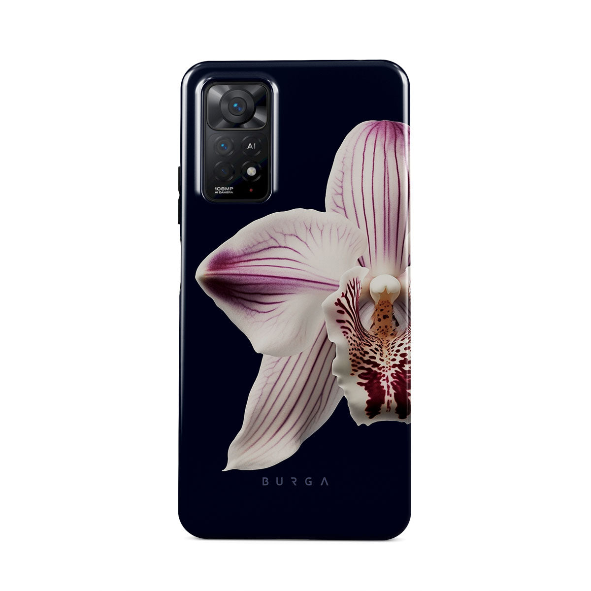 The white orchid blooms boldly upon a night sky blue, a beacon of clarity in the darkness. Our Nectar Xiaomi Redmi Note 11 Pro+ phone case design speaks to the soul's desire to find light within, to illuminate the hidden paths of self-discovery that only reveal themselves under the cloak of introspection.