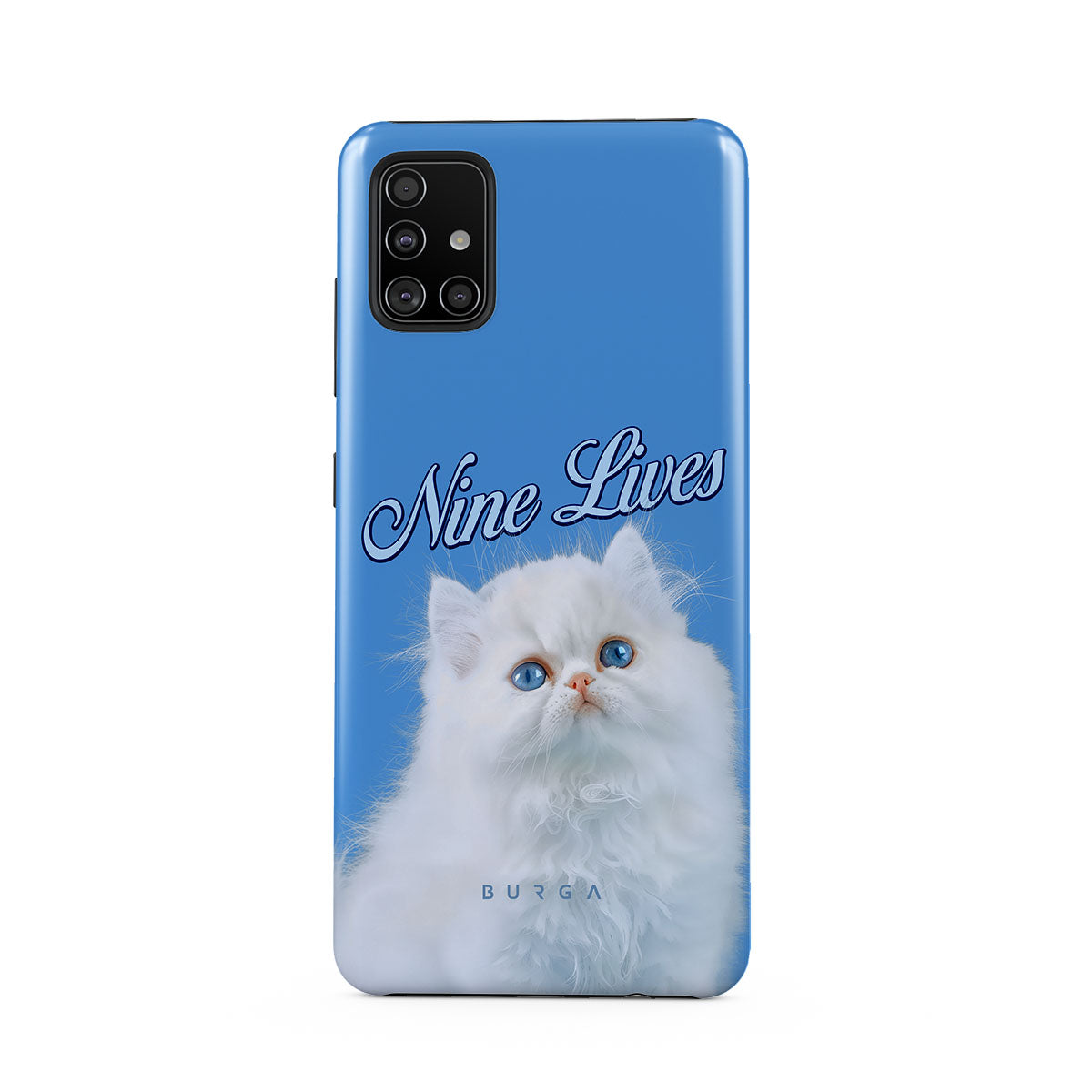 Channel your inner diva with our Nine Lives Samsung Galaxy A51 4G phone case. It's luxe, plush, and purr-fectly fabulous, with just enough fluff to show you mean business.
