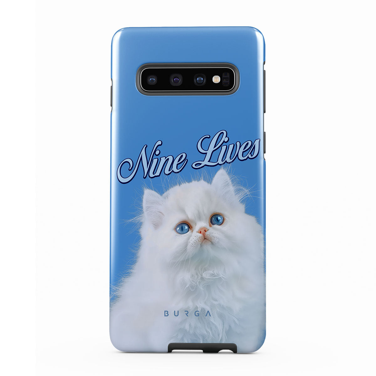 Channel your inner diva with our Nine Lives Samsung Galaxy S10 4G phone case. It's luxe, plush, and purr-fectly fabulous, with just enough fluff to show you mean business.