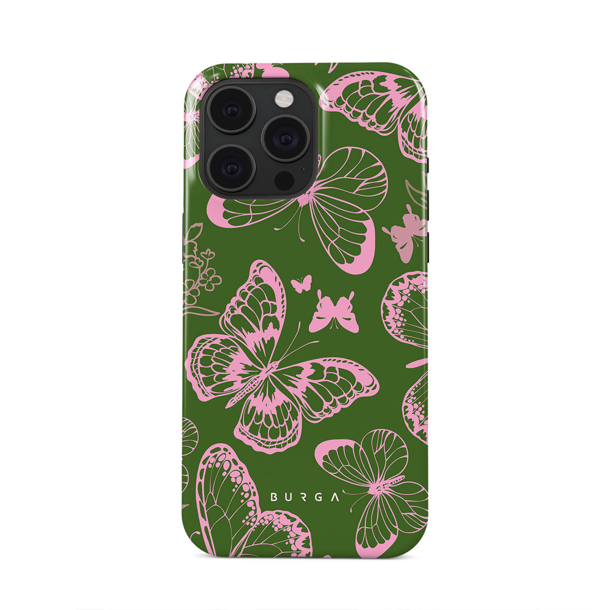 A retro-inspired masterpiece, this iPhone 15 Pro phone case features a delightful butterfly print that's sure to take you on a trip down memory lane. Inspired by the carefree spirit of the groovy era, this case reminds you to live your best life with No Regrets and embrace every moment. With this enchanting case design, you'll be ready to spread your wings and fly high, with nothing holding you back.