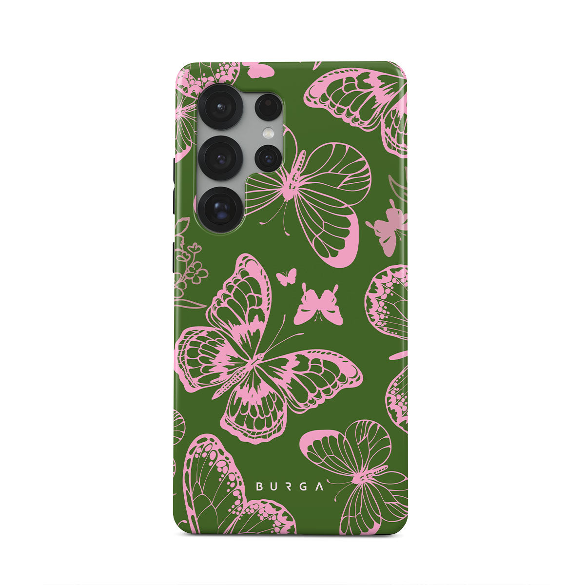 A retro-inspired masterpiece, this Samsung Galaxy S25 Ultra phone case features a delightful butterfly print that's sure to take you on a trip down memory lane. Inspired by the carefree spirit of the groovy era, this case reminds you to live your best life with No Regrets and embrace every moment. With this enchanting case design, you'll be ready to spread your wings and fly high, with nothing holding you back.