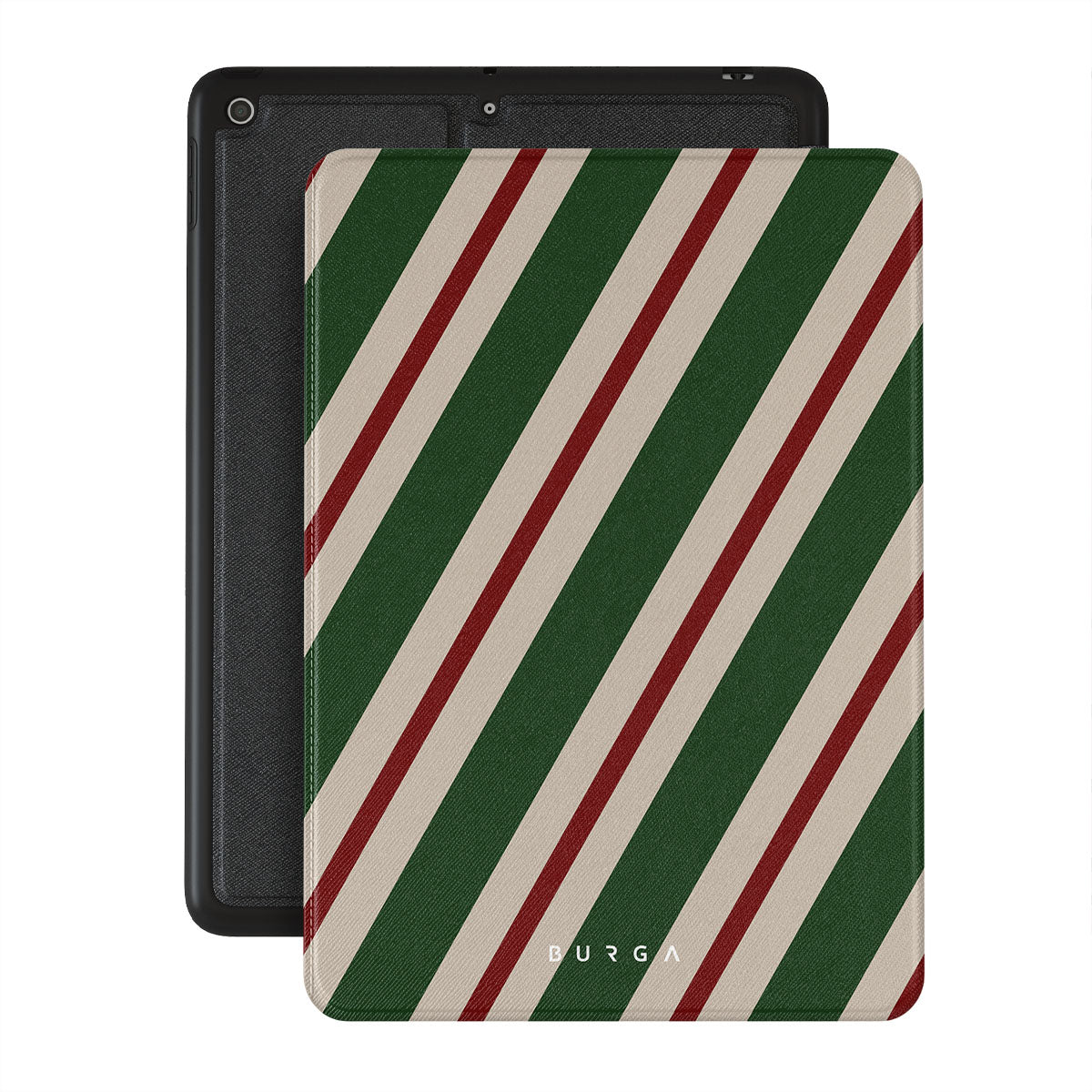 A joyful design that screams holiday spirit. Our North Pole iPad 10.2 (9th/8th/7th Gen) folio case transports you straight to Santa's workshop. Bold green, red, and white stripes echo the joy and laughter of elves preparing for the festive season.