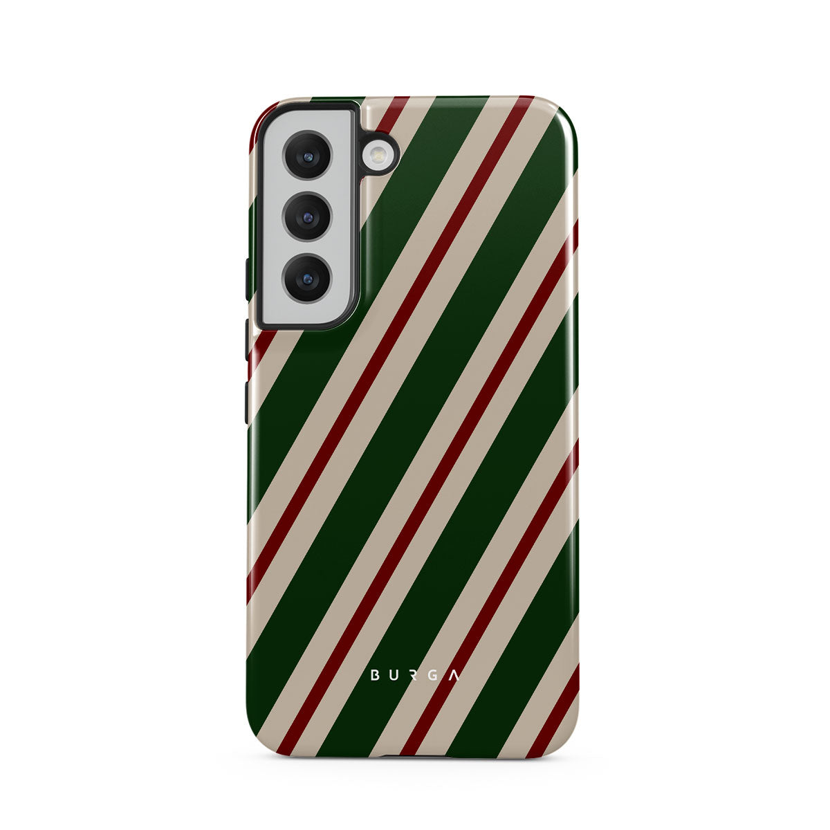 A joyful design that screams holiday spirit. Our North Pole Samsung Galaxy S22 Plus Case phone case transports you straight to Santa's workshop. Bold green, red, and white stripes echo the joy and laughter of elves preparing for the festive season.