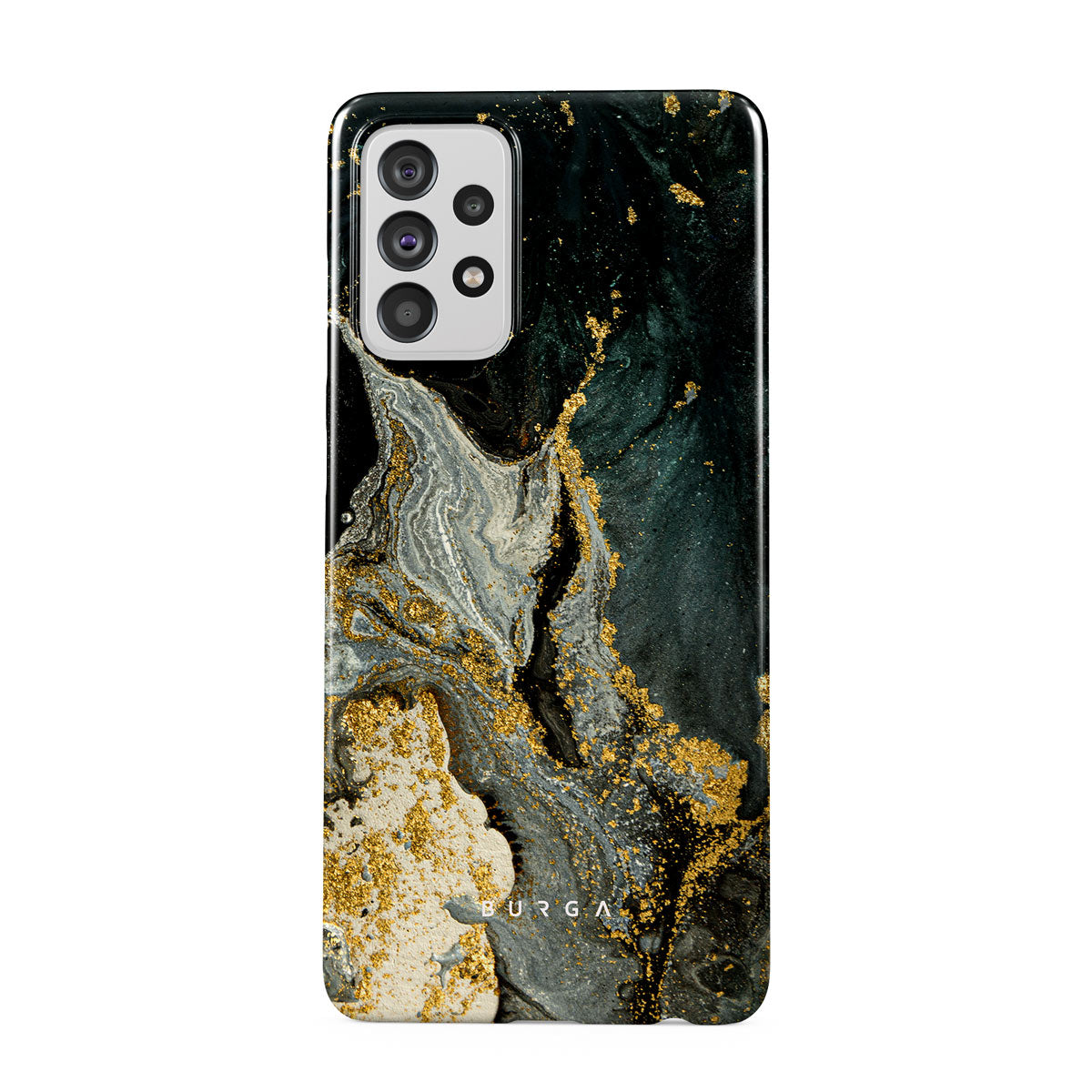 Our cute marble Northern Lights Samsung Galaxy A72 phone case showcases a combination of moss green shades in a marble pattern enriched with golden specks. The asymmetrical design reminding of a star map will add a touch of luxury and mystery to every accessory lover's collection.